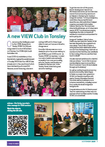O Tonsley VIEW Club (SA) was change venue. core values. “I would like to foster a