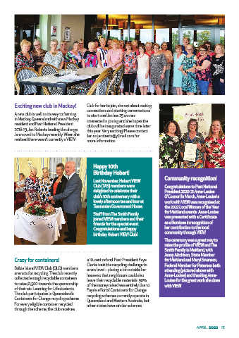Bribie Island VIEW Club (QLD) members a new level – placing a bin outside her aending (pictured above with