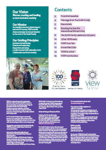 National Vice Presidents: Evelyn Berg and essential to breaking the cycle of disadvantage. Front cover: VIEW National President Marg