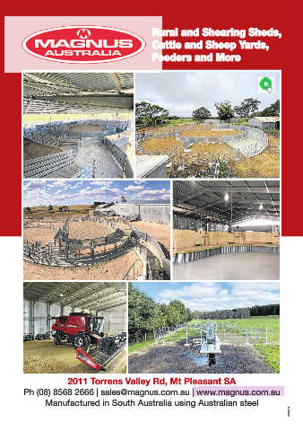 Rural and Shearing Sheds, Cattle and Sheep Yards, Feeders and More 2011 Torrens Valley Rd, Mt Pleasant SA Ph (08) 8568 2666 | sales@magnus.com.au | www.magnus.com.au Manufactured in South Australia using Australian steel VR4822623