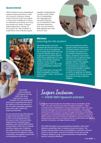 Young Citizen of the Year and Sarah The VIEW IWD Speech was presented by members of the VIEW