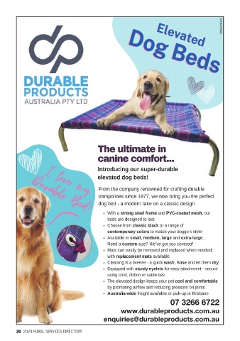 RM8443043 07 3266 6722 www.durableproducts.com.au enquiries@durableproducts.com.au 30 2024 RURAL SERVICES DIRECTORY