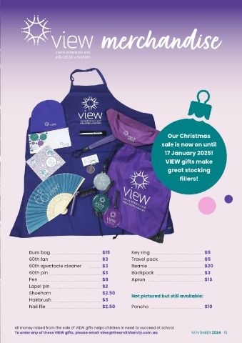 To order any of these VIEW gifts, please email view@thesmithfamily.com.au NOVEMBER 2024 15